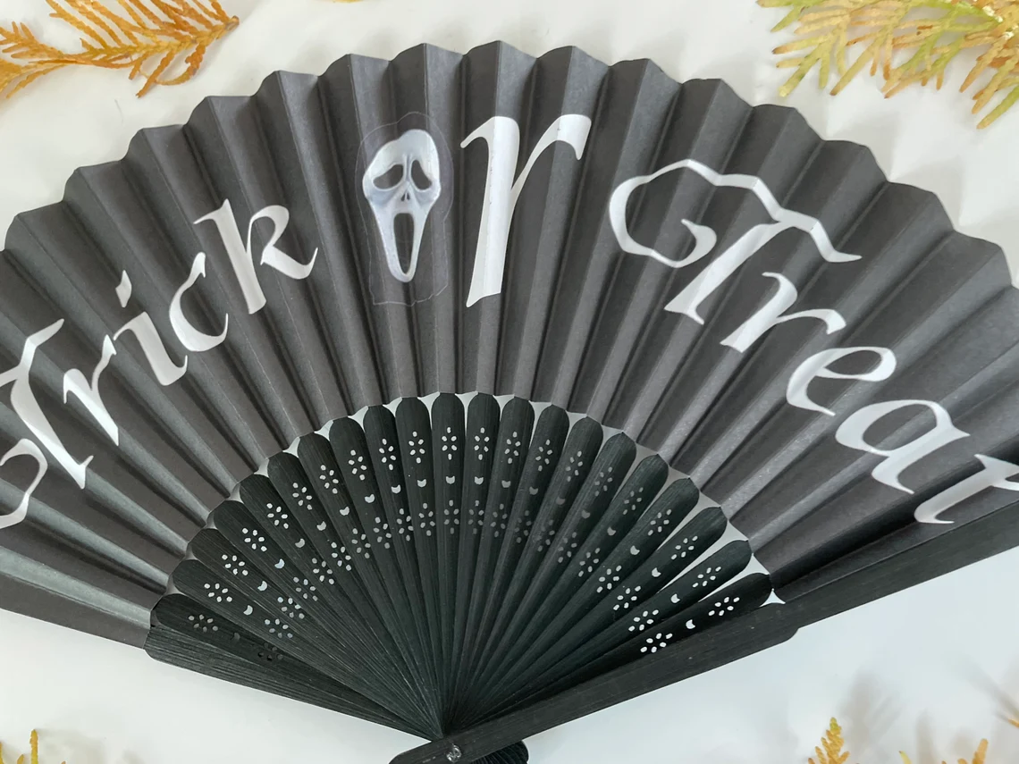 Halloween Paper Hand Fan, Halloween theme , Handmade Bamboo Handheld Fan Trick or Treat ( Paper)